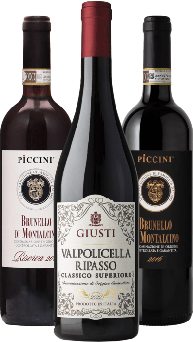 Piccini Brunello di Montalcino DOCG is an Italian red wine made from 100% of the grapes of the variety Sangiovese Grosso, late hand harvest, wine-growing area of Montalcino, Italy (altitude 350 m above sea level).