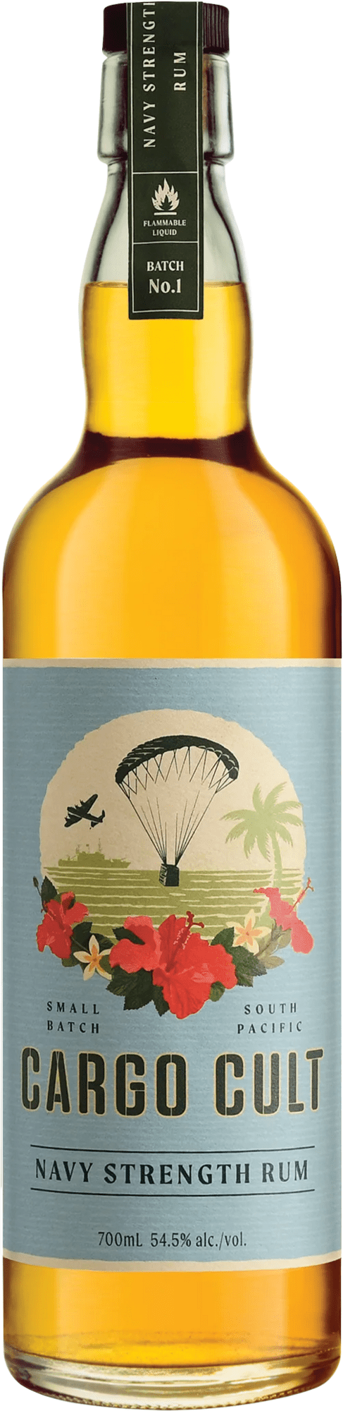 Cargo Cult Navy Strength Rum is an authentic, uncompromising rum created for lovers of true rum strength. It is a 100% pot still rum that has been aged for 3-4 years in tropical bourbon barrels right in the South Pacific, where high temperatures and large daily fluctuations significantly accelerate the maturation process and concentration of flavors.