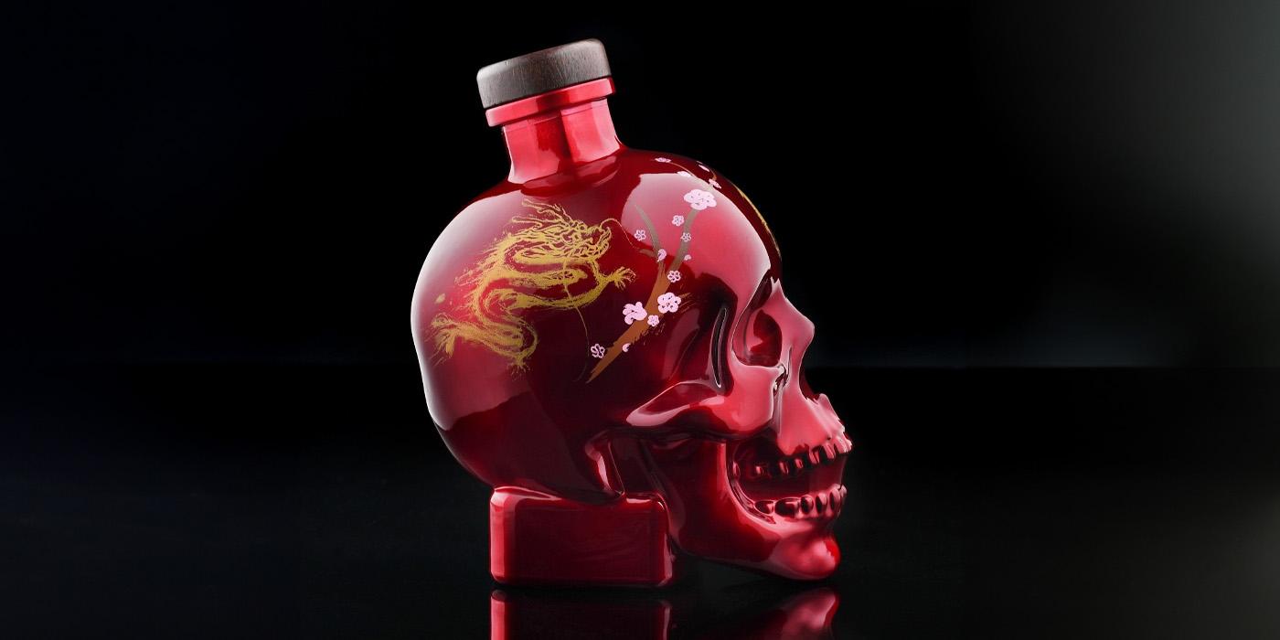 The limited edition Crystal Head Lunar Year of the Dragon was inspired by the arrival of the Chinese Lunar Year of the Dragon. This time, the iconic bottle in the shape of a skull is dressed in a metallic red color with a hand-painted golden dragon - a symbol of strength and happiness. It is complemented by blossoming sprigs of cherry blossoms, representing beauty and renewal.