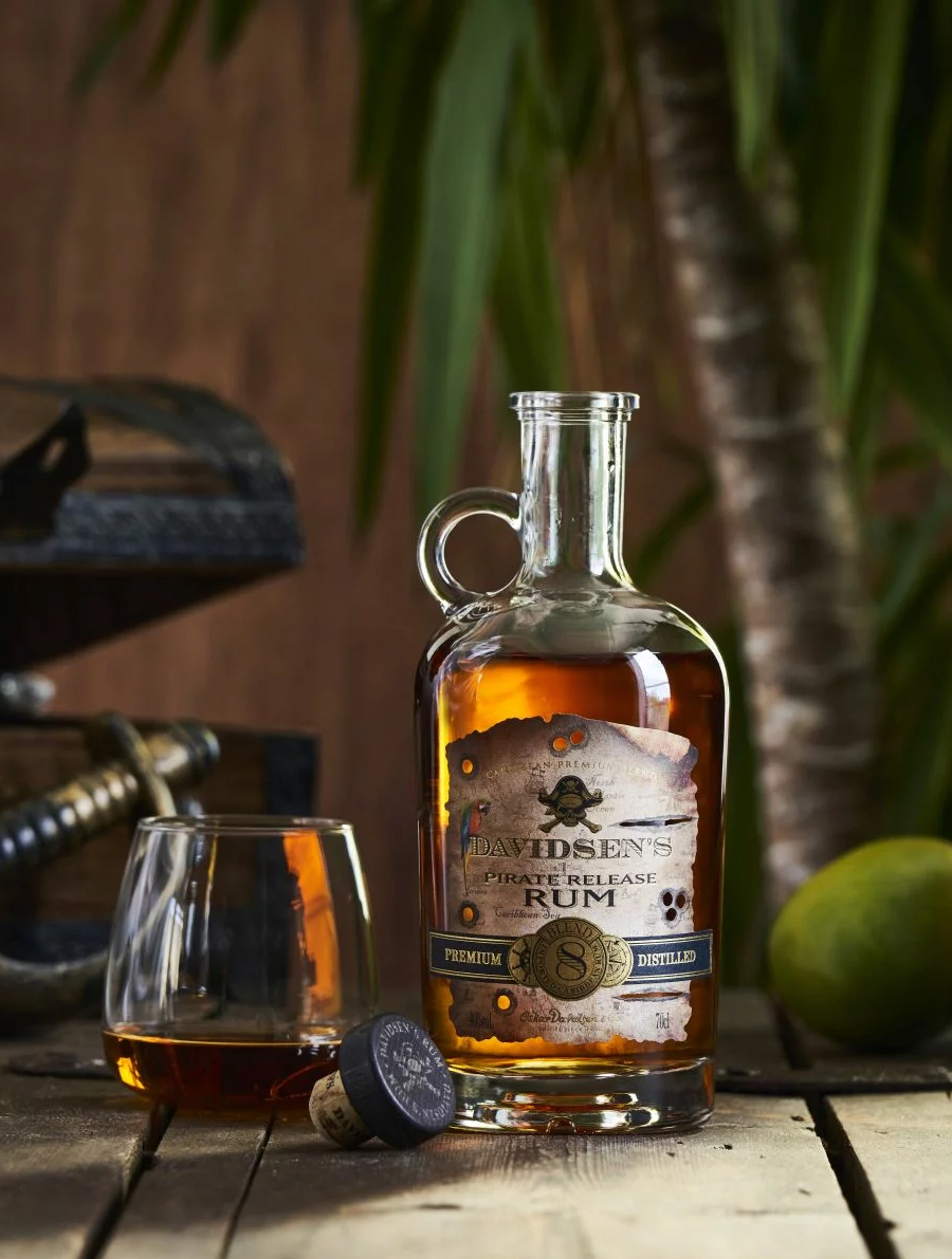 Davidsen's Pirate Release is a molasses blended rum made from a blend of rums from Jamaica, Barbados and the Dominican Republic. These rums combined to form a spicy hot-sweet dark rum. Before mixing, part of the rum was aged for up to 8 years in American white oak barrels.