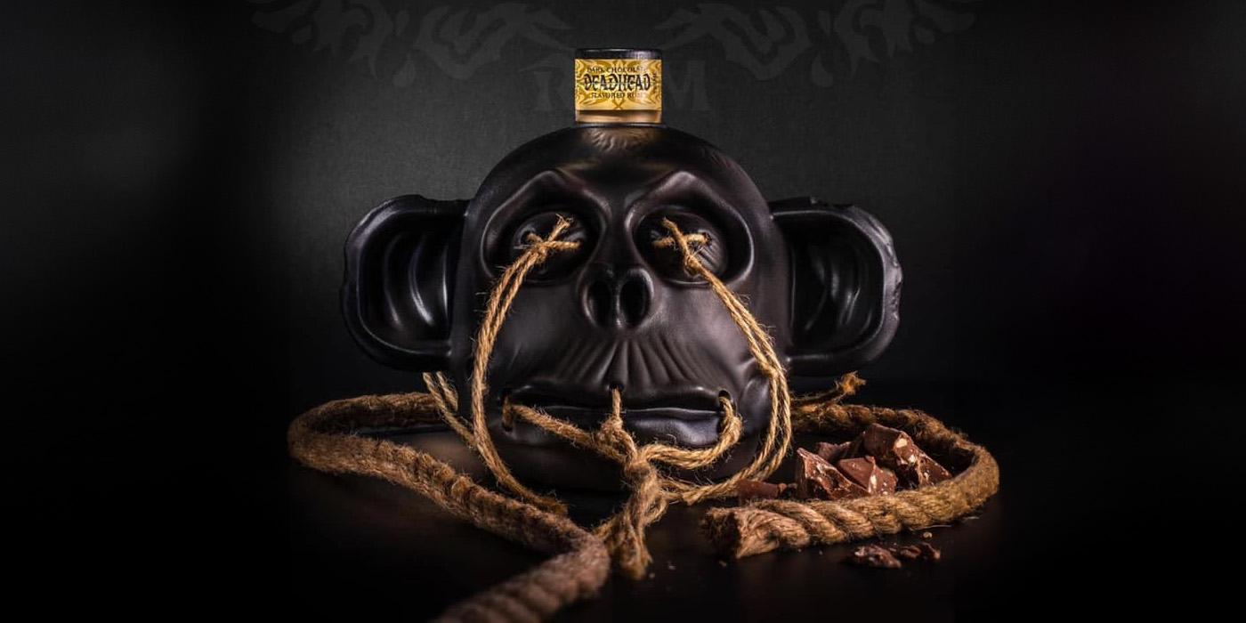 The extravagant Deadhead Chocolate rum is presented in a bottle in the shape of a monkey's head, designed by designer and maker Rodne McLellan.