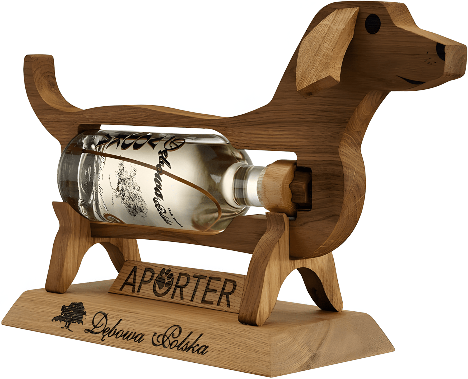 Thanks to this charming gift set from Dębowa, you can give your friends an original present! The bottle is placed in a wooden stand shaped like a dog.