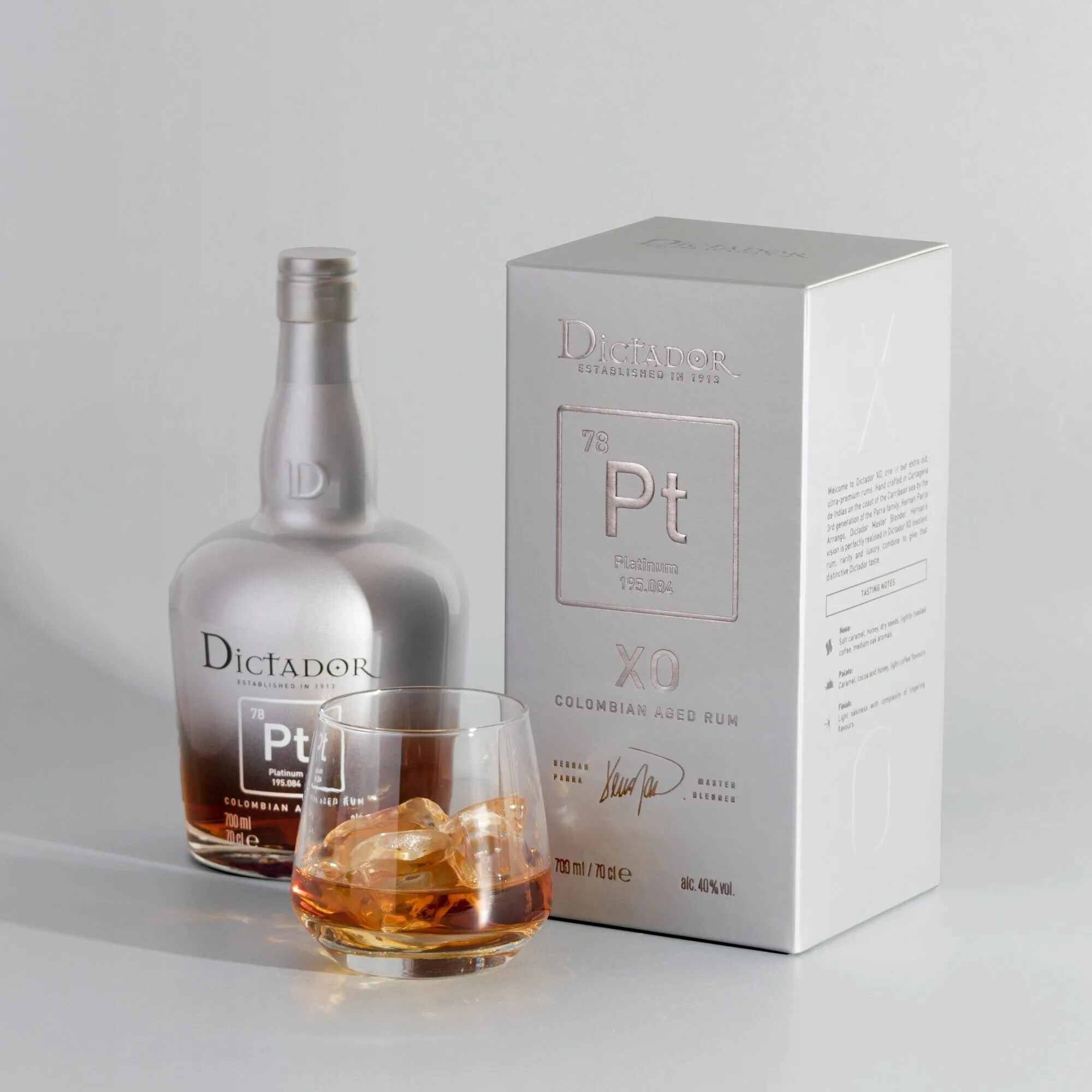 Dictador Platinum is a premium Colombian rum that is made by fermenting unique virgin honey from sugar cane. The rum was distilled using a modern stainless steel alembic.
