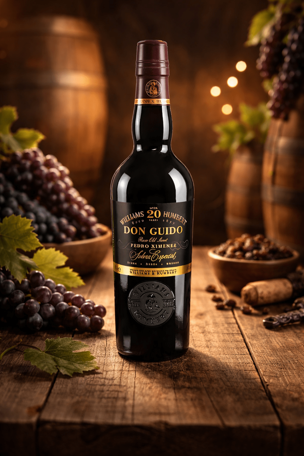 Don Guido 20 Year Old belongs to the portfolio of renowned Spanish producer Williams & Humbert in the Jerez de la Frontera region and is a sweet sherry made from the Pedro Ximénez (PX) grape variety.