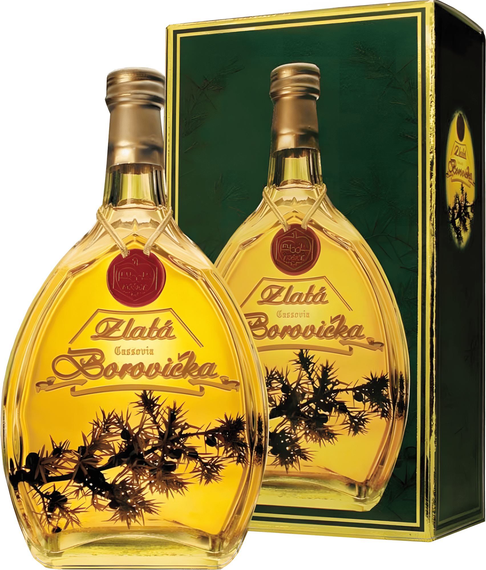 Zlatá Cassovia Borovička has its place at festive events, family celebrations, and representative occasions. With its exceptional bottle design, it exudes luxury and is also suitable as a gift.