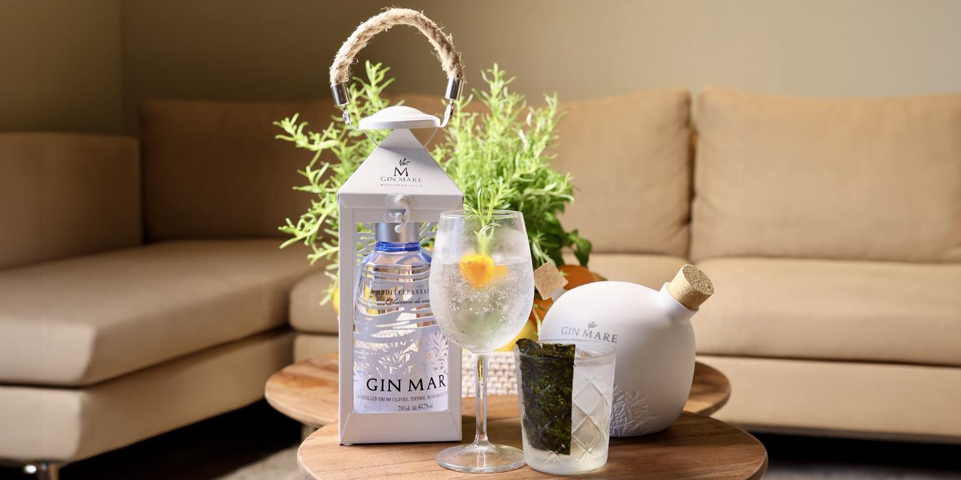 The package contains Gin Mare 0.7l and a decorative lantern.