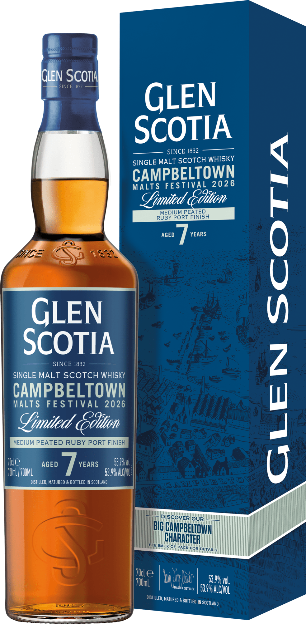 Glen Scotia 7 Year Old Festival Release 2026 is a special edition created for the Campbeltown Malts Festival. This release celebrates the unique character of the Campbeltown region – one of the most historically significant whisky-producing areas in Scotland. Founded in 1832, the Glen Scotia distillery is one of the last remaining traditional producers in the region and is renowned for its distinctive maritime character.