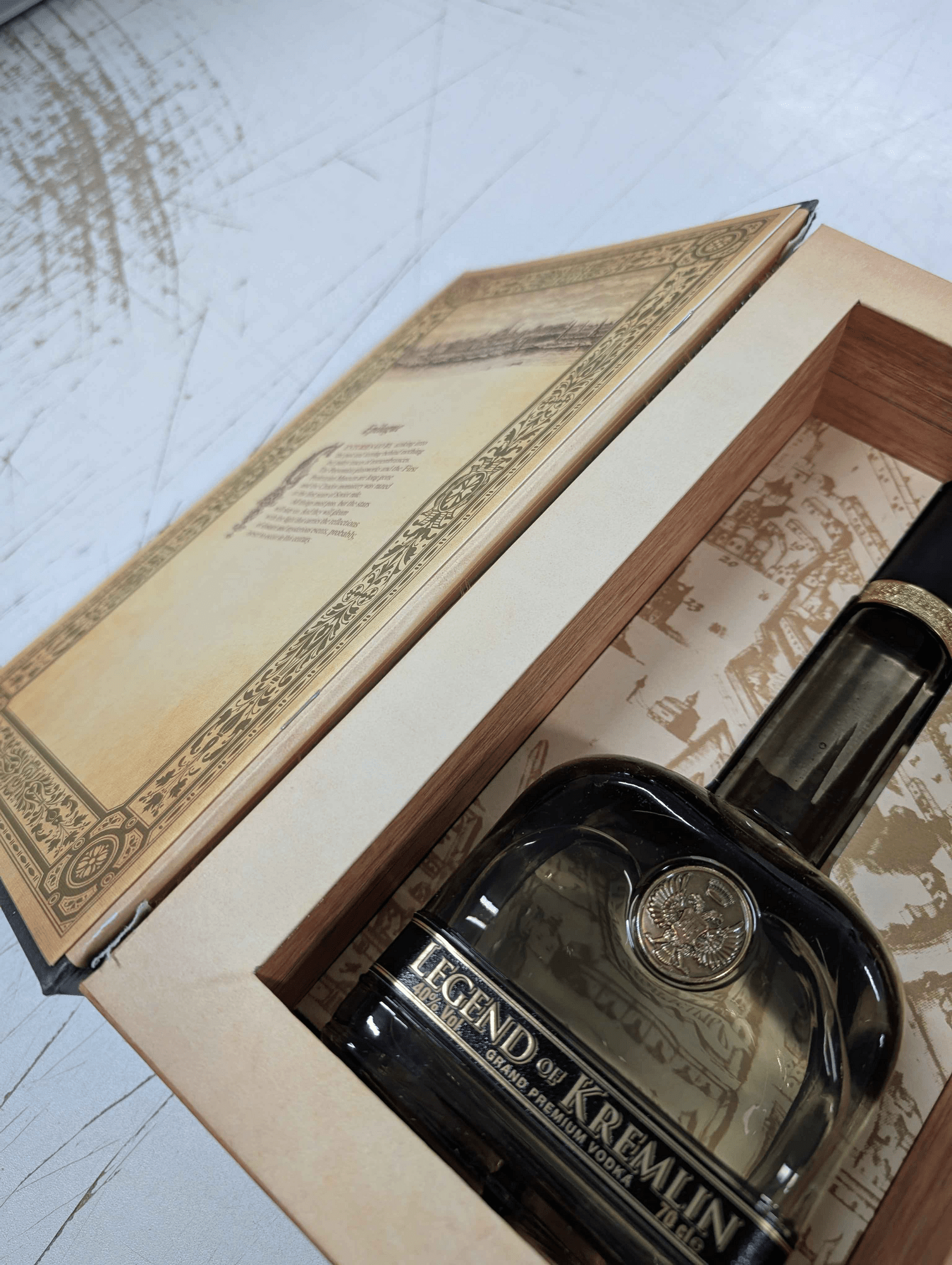 The limited edition of Legend of Kremlin vodka in a stylish book-shaped box is made from a special grain distillate "Lux" (containing 96.5% alcohol) and soft water from the Itar artesian well. Through fivefold distillation and the addition of natural ingredients, it gains a distinctive taste and refined aroma. Although its tradition began only in 2004, it has already won 11 Grand Prix awards and 9 gold medals at major international and Russian competitions.