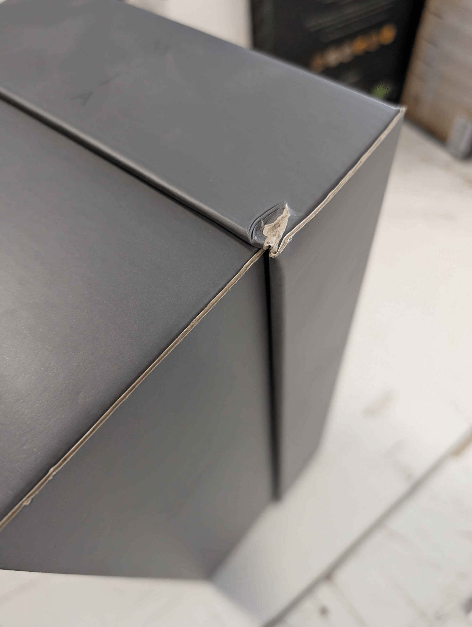 Product with slightly damaged cardboard packaging.