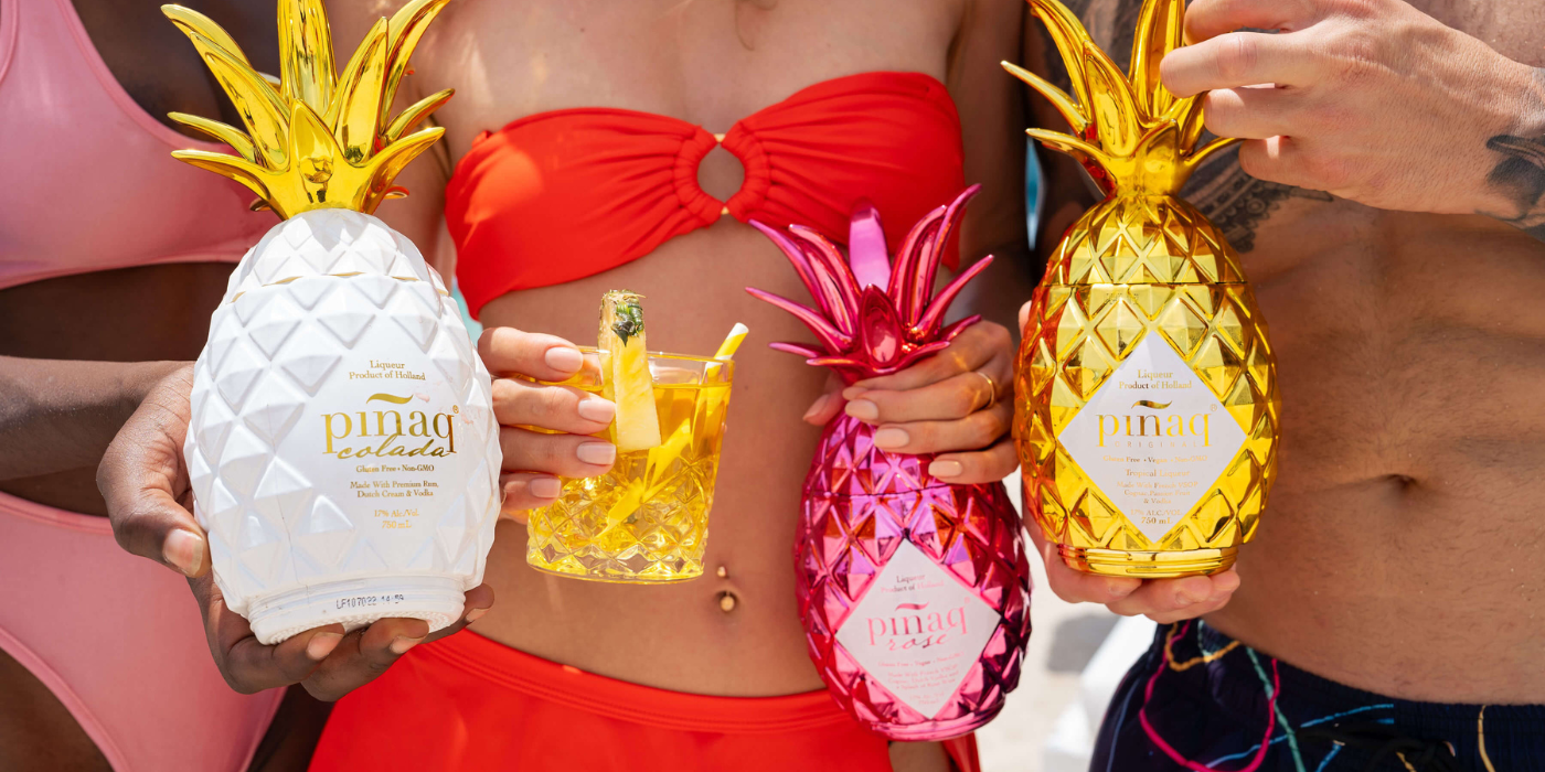 Piñaq is a Dutch brand known for its tropical style and iconic bottle design – the pink pineapple bottle is made from 100 % recycled material and can also be used as a decorative glass. The brand emphasizes sustainability, quality ingredients, and a vibrant sensory experience.