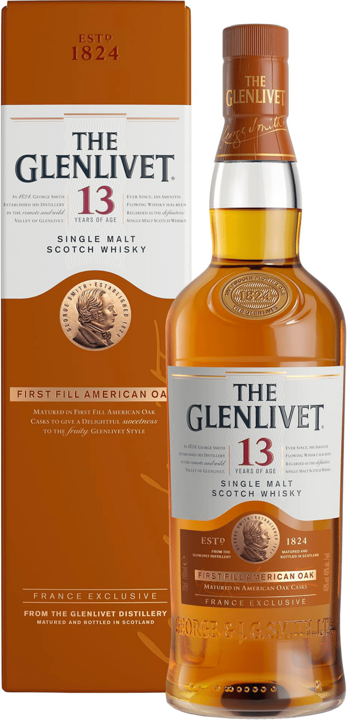 The Glenlivet First Fill American Oak is a 13-year-old Scotch whisky that has matured for at least 13 years in American Oak oak barrels. These barrels have been a popular choice since 1900! They create a perfect harmony between barrel and whisky. It comes from the Speyside area.