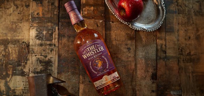 Irish premium whiskey The Whistler Calvados Cask, which has been distilled three times for extra softness and silky taste. It is made from a blend of only the highest quality Irish Malt and Grain whiskey.